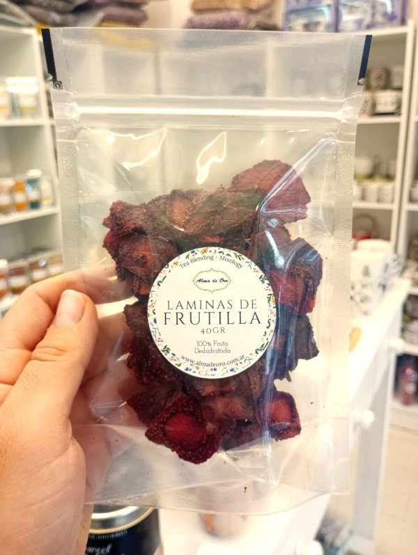 Frutillas deshidratadas naturales sin azúcar agregada.